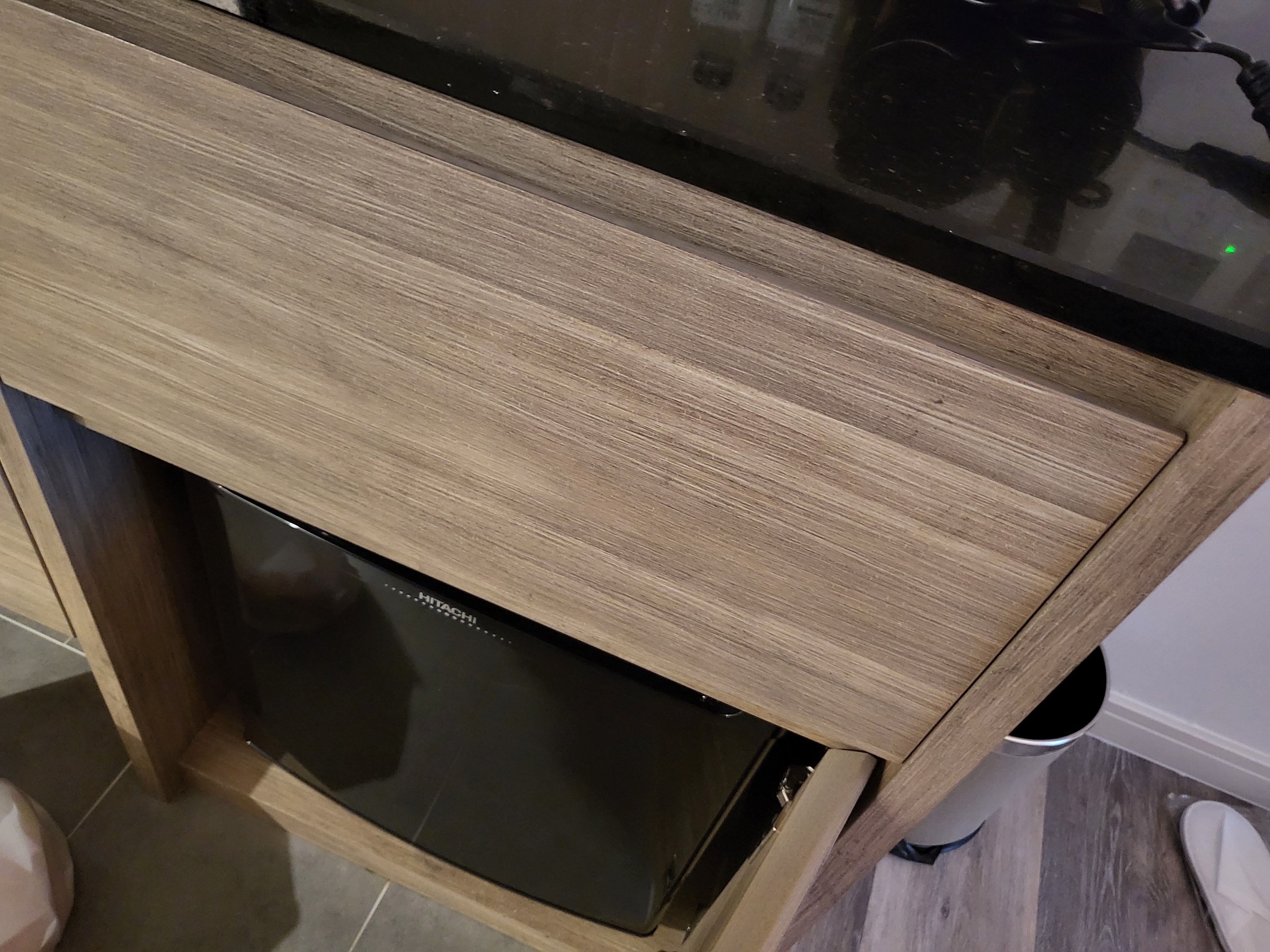 아래에는 미니 냉장고가 있습니다.