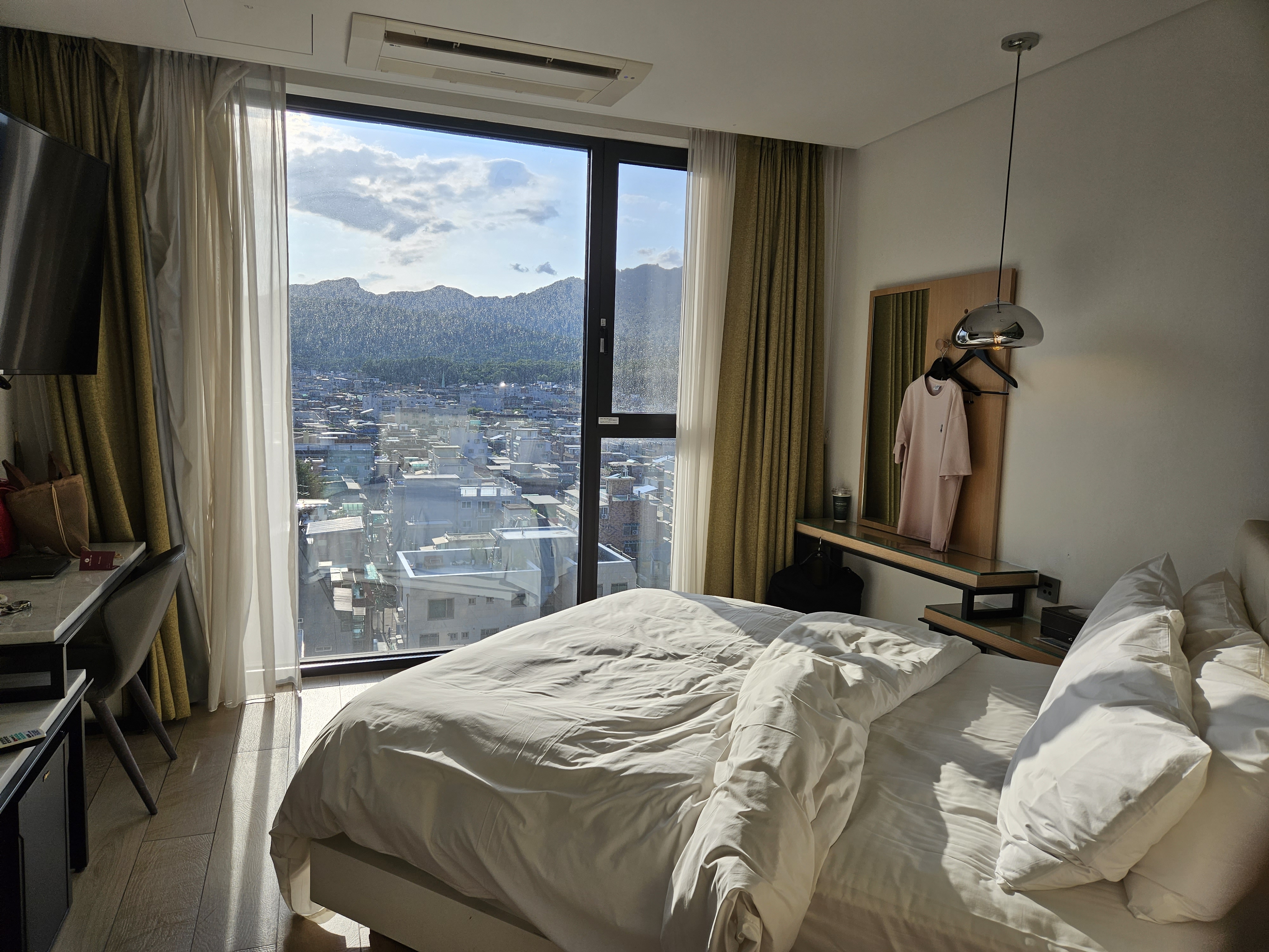 커튼을 열고나니 도봉산 뷰가 보여요.