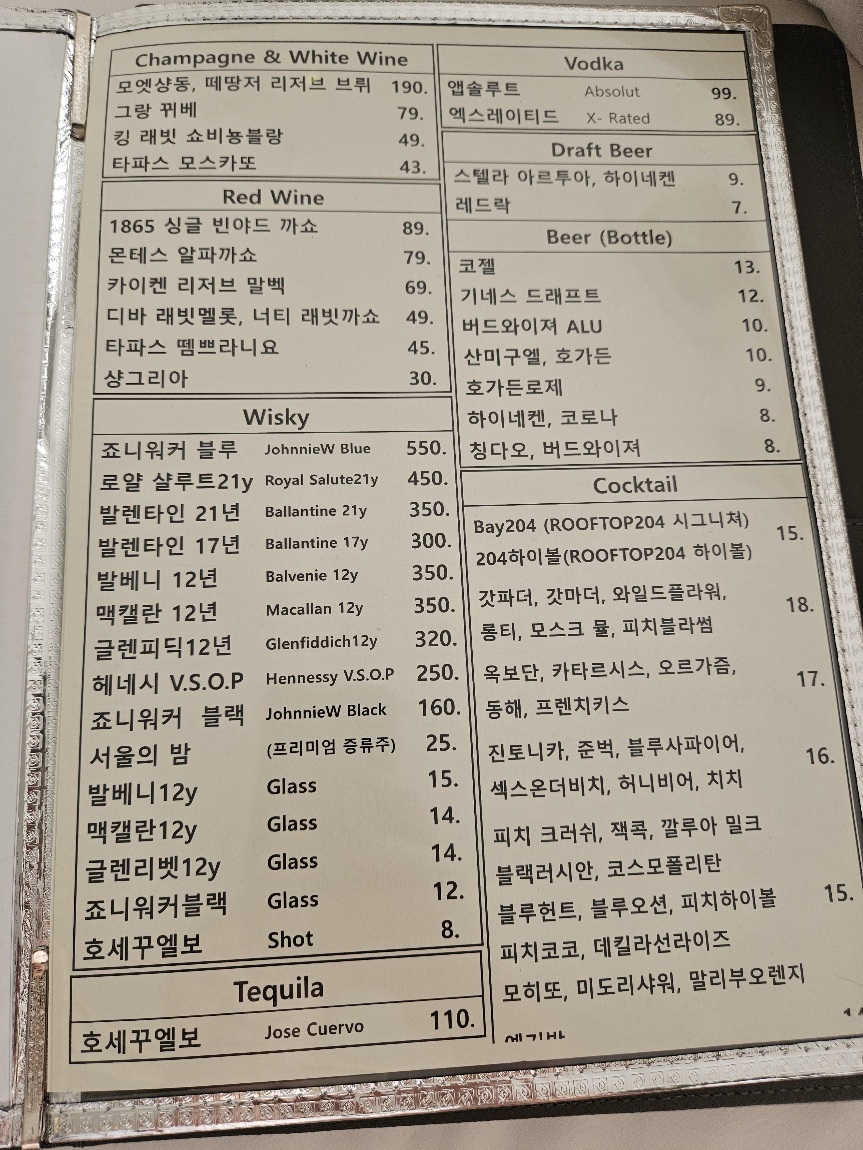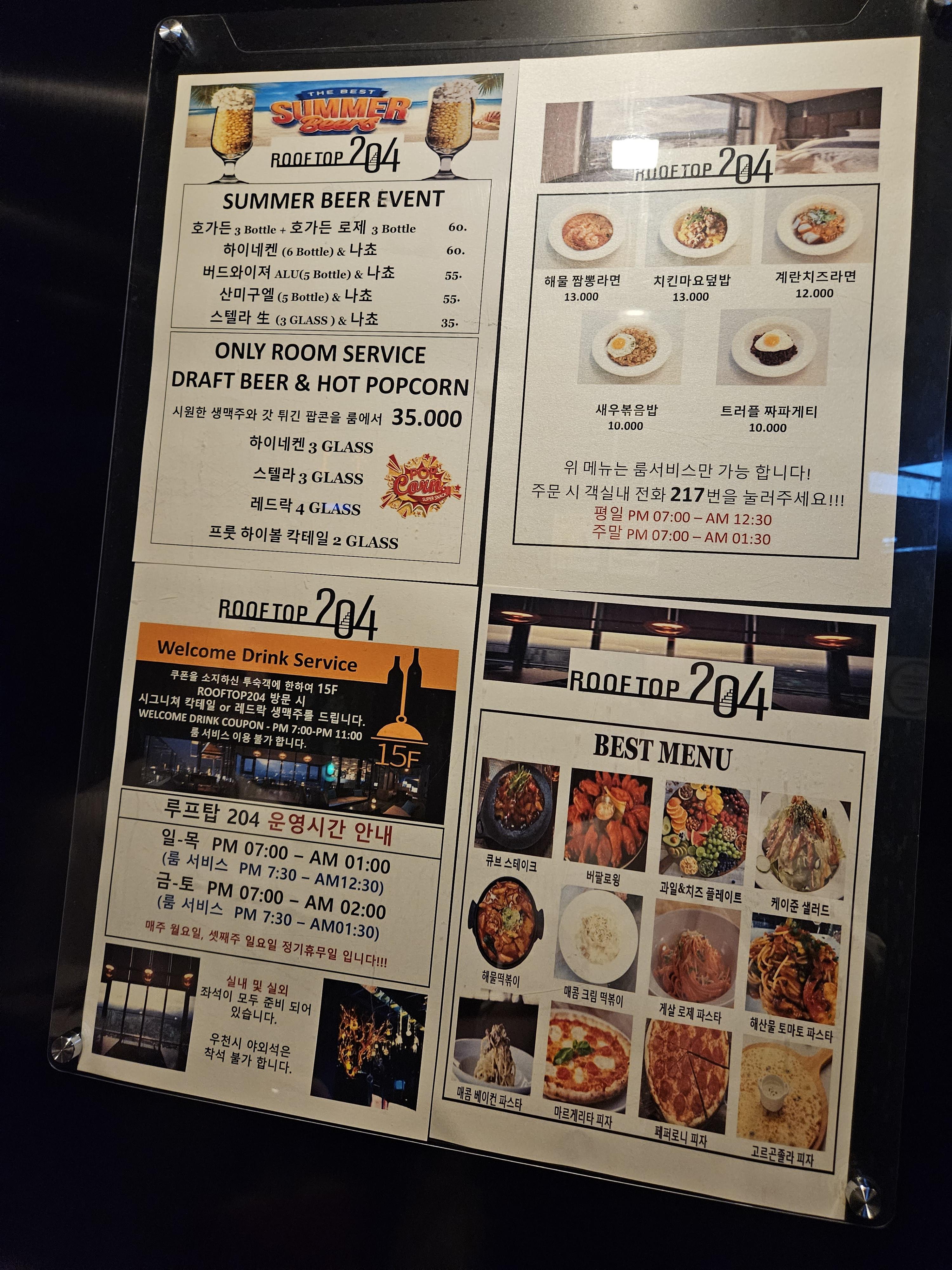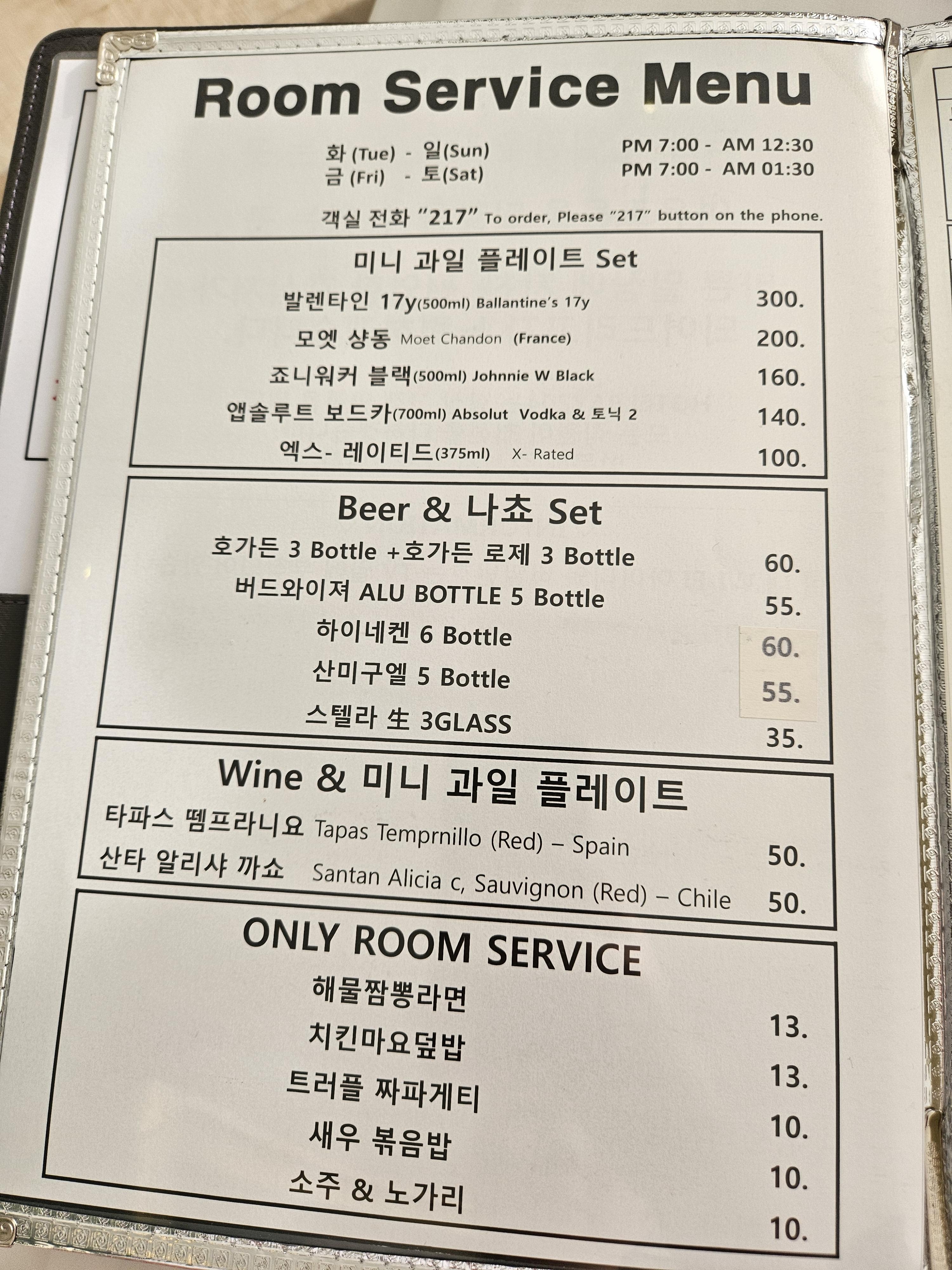 룸서비스 메뉴판에는 이렇게 되어있어요.