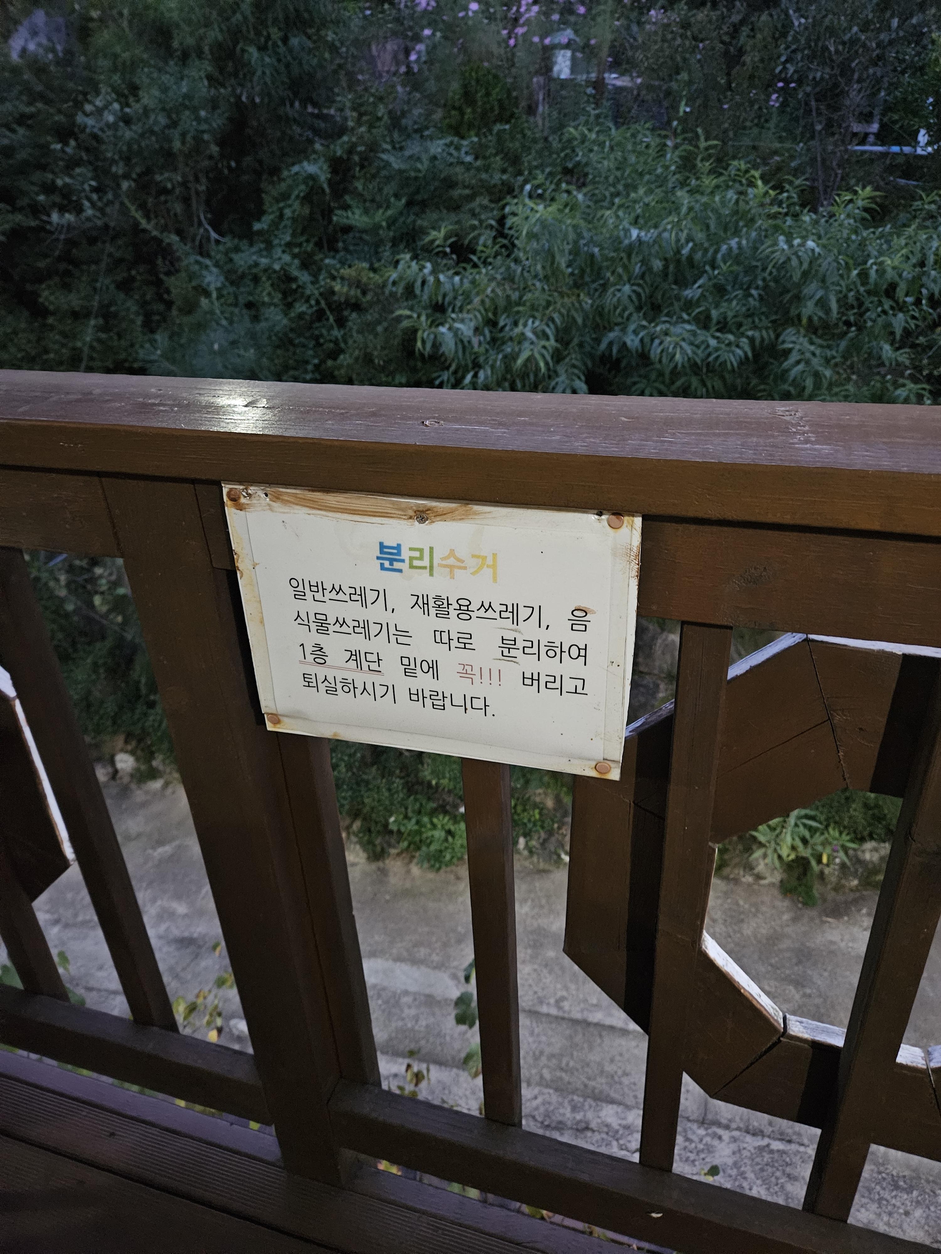 방 입구에 있던 분리수거 안내문.