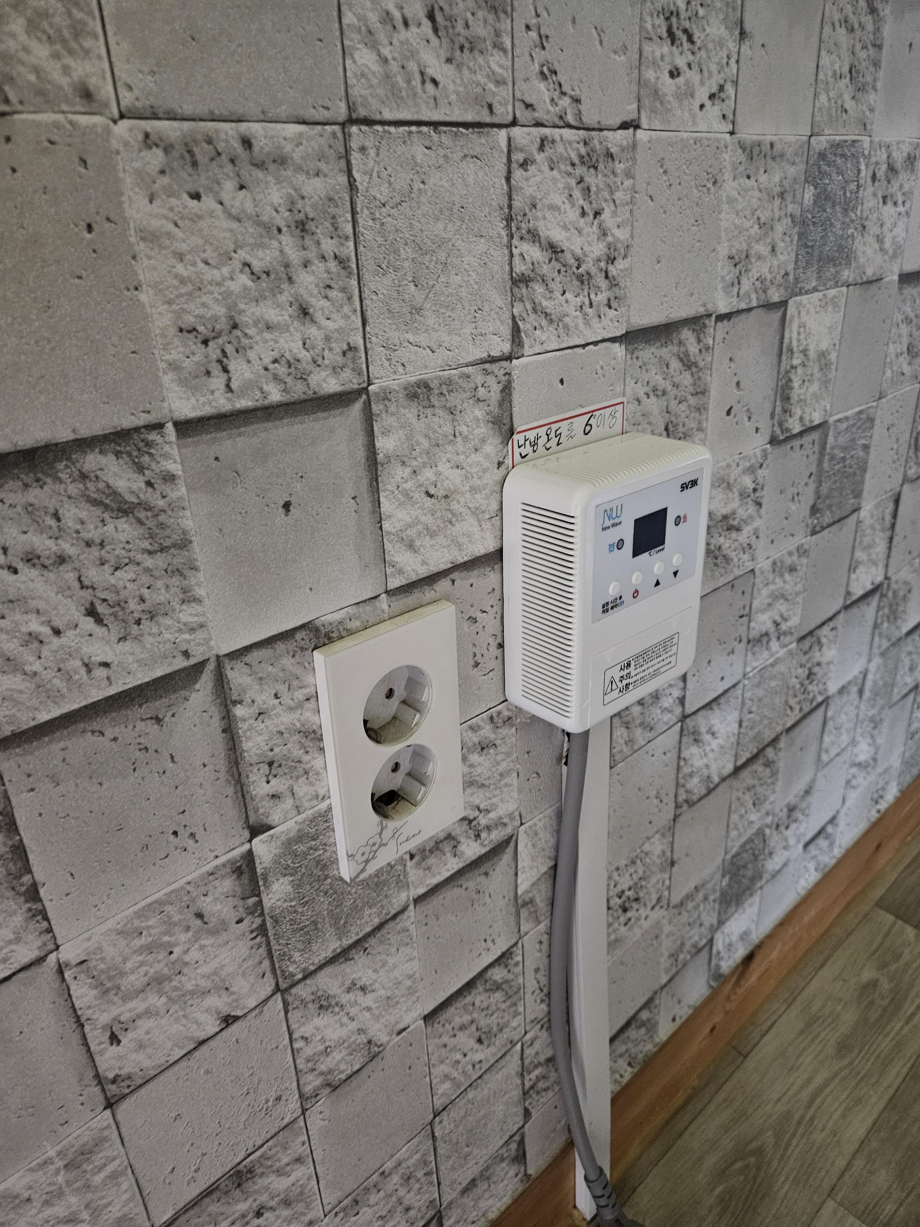 복층 올라가는 계단 끝자락에는 추울때 킬수있는 난방기기가 있어요.