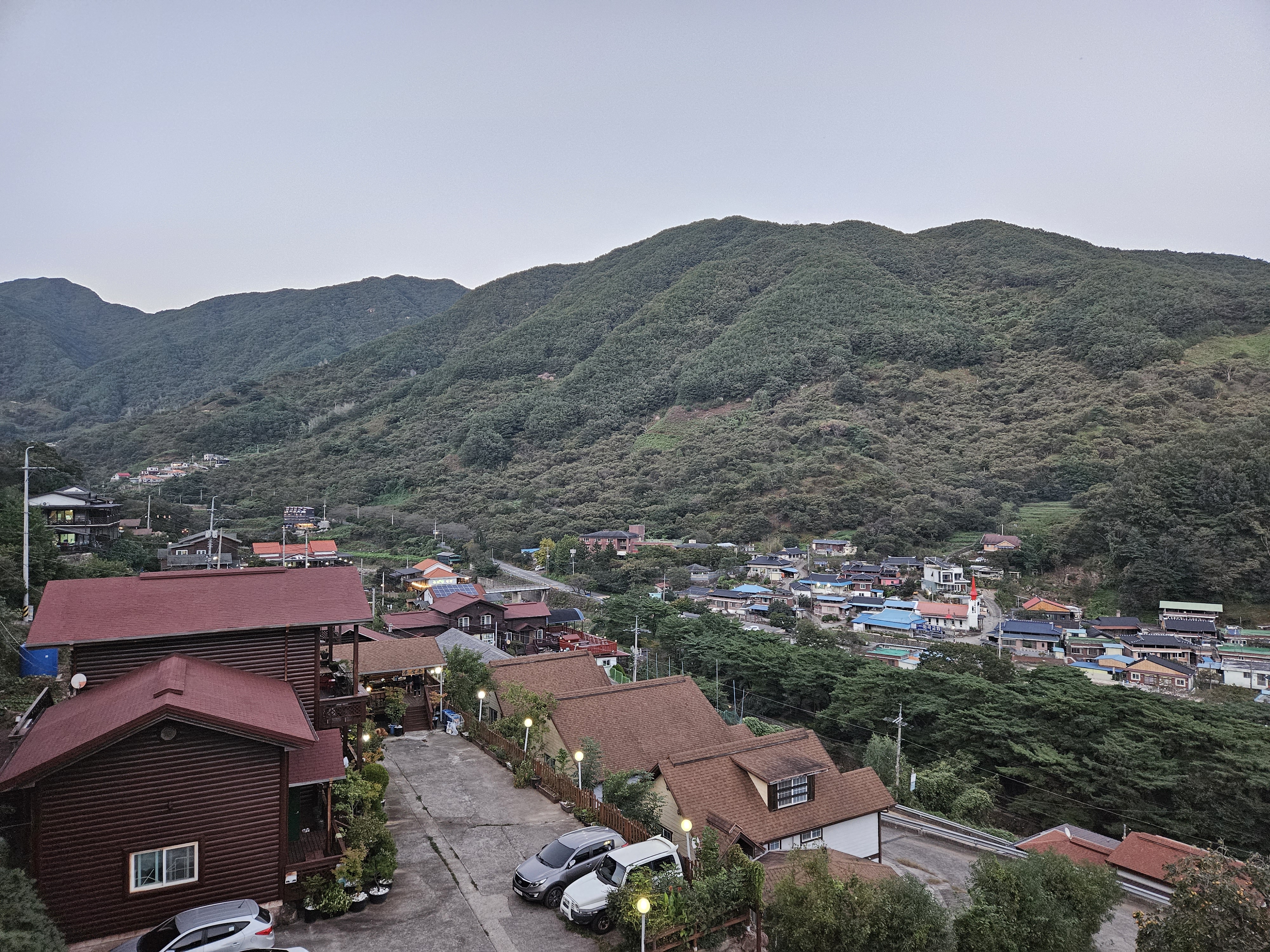 저희가 묵은 숙소는 펜션단지 맨 꼭대기였어서 아래쪽 펜션단지 뷰가 다 보였어요.