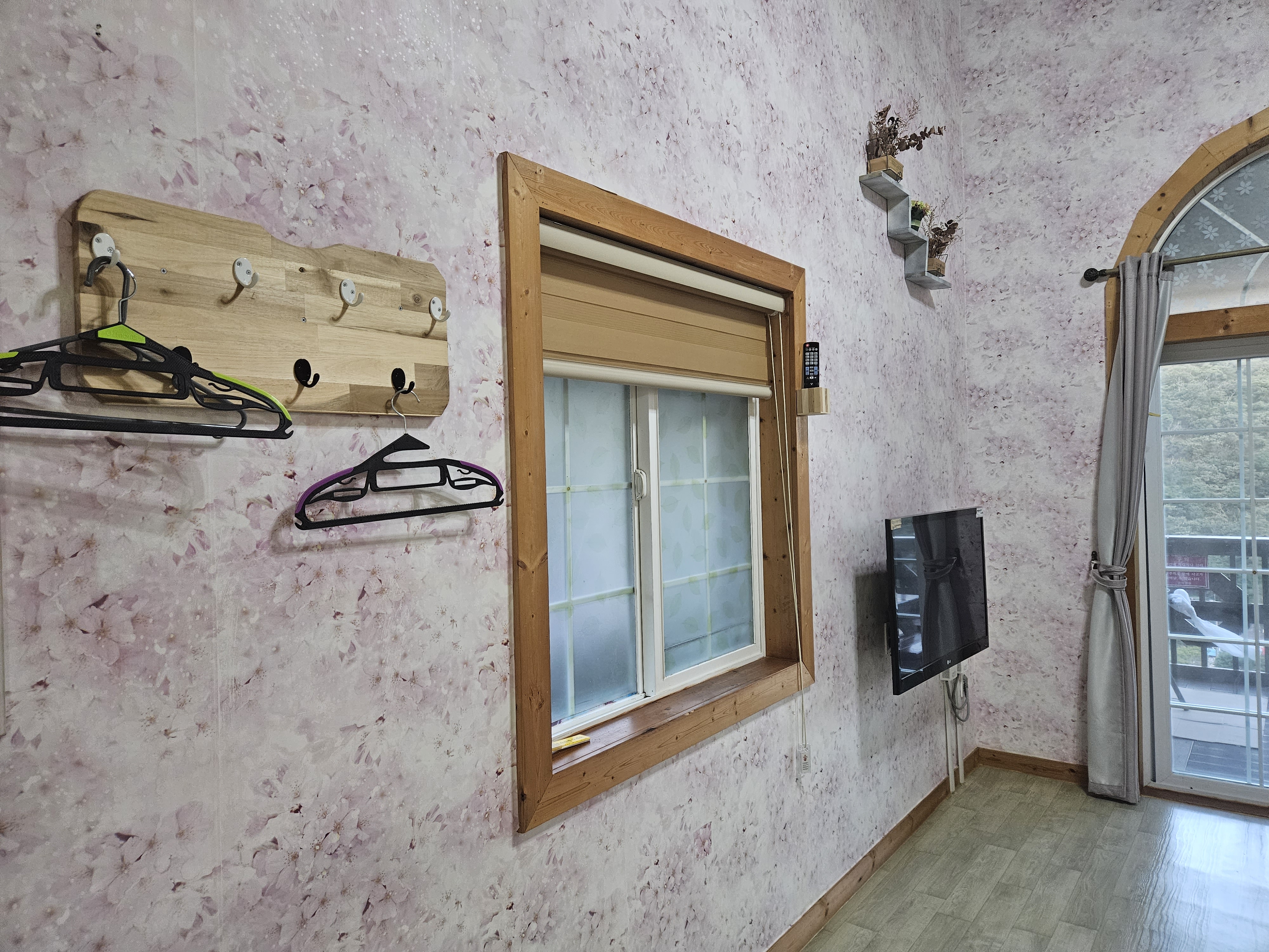 옷걸이도 넉넉하고 TV도 벽걸이고.. ott서비스는 안되었던걸로 기억해요.