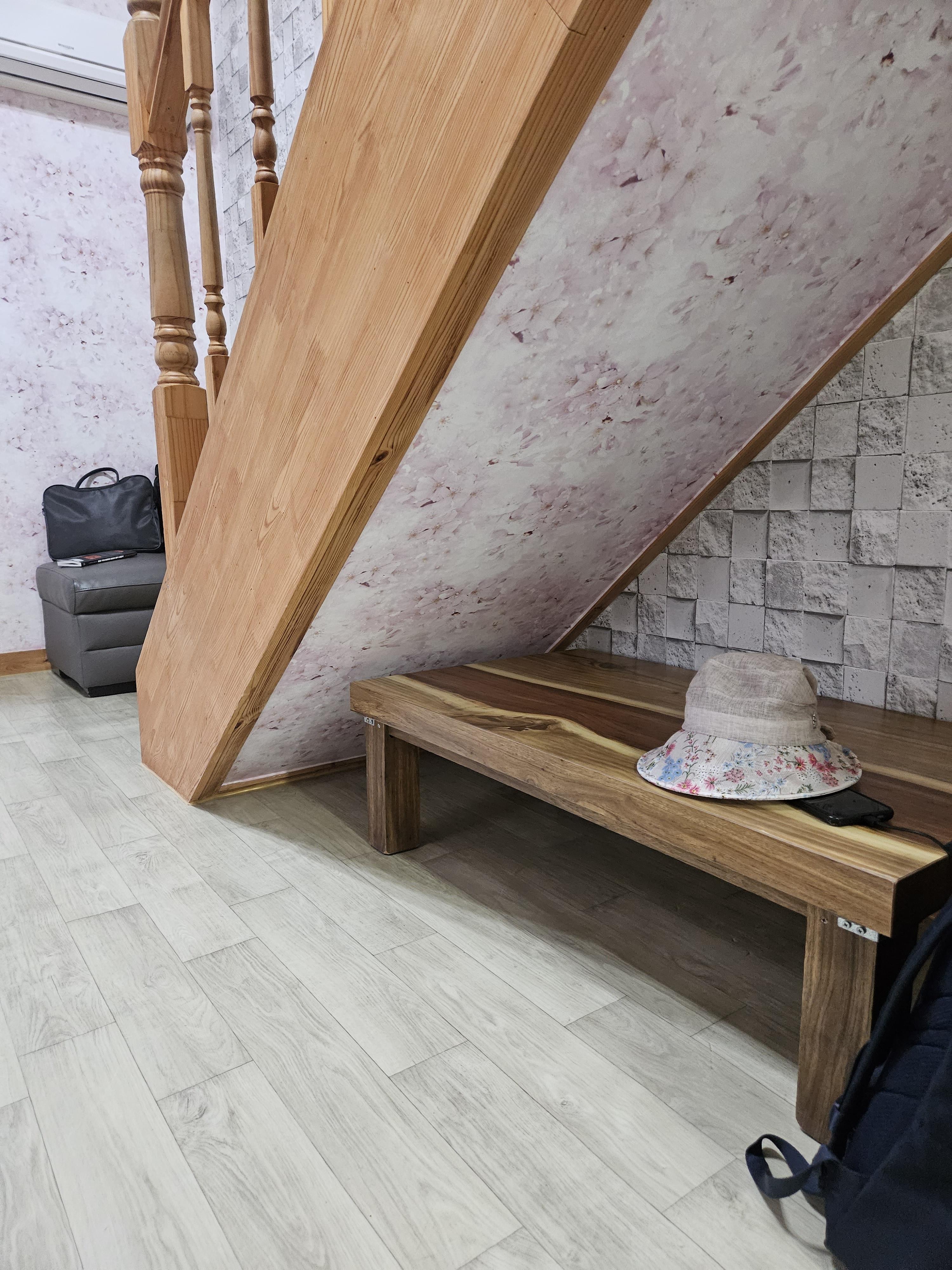 2층으로 올라가야해요! 나무 계단으로 올라가면 됩니다 :)