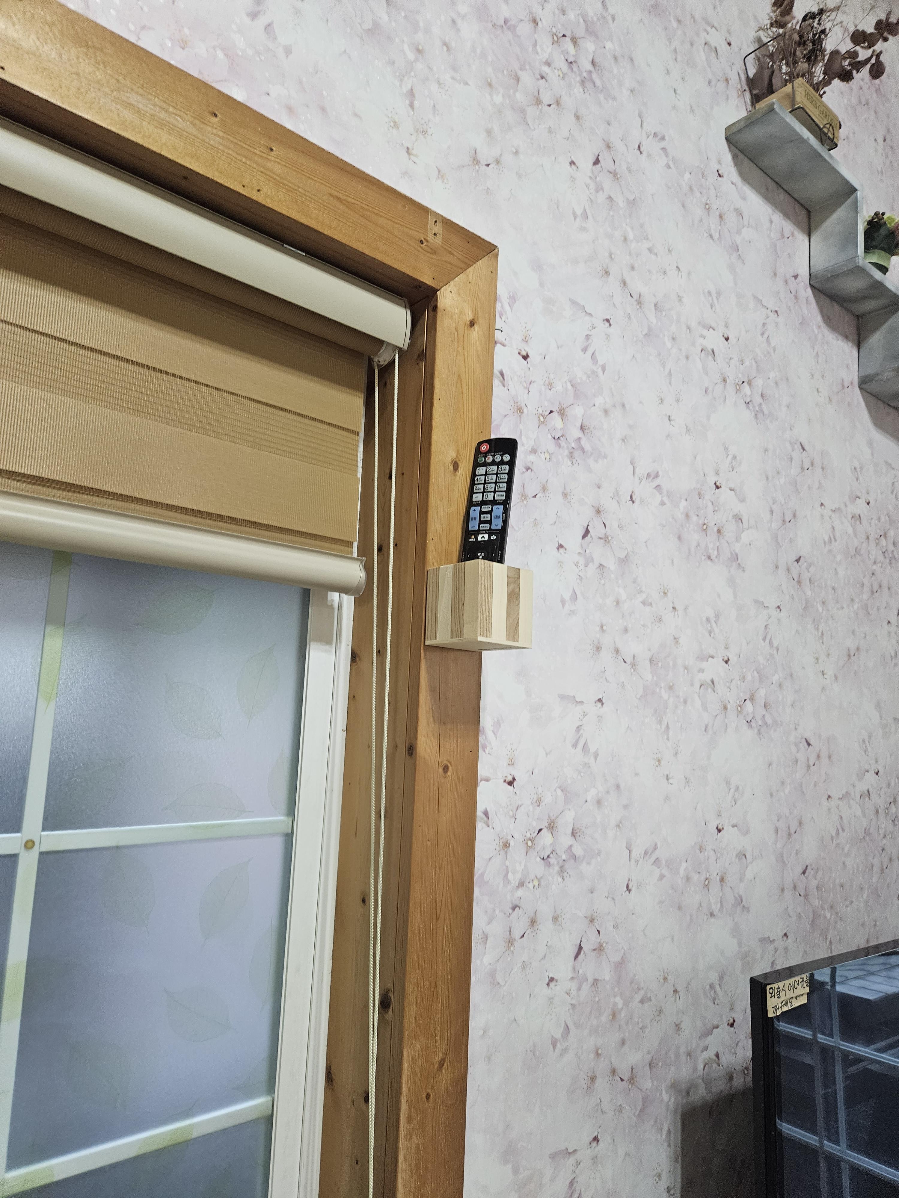 티비 위에는 리모컨이 있어요.
