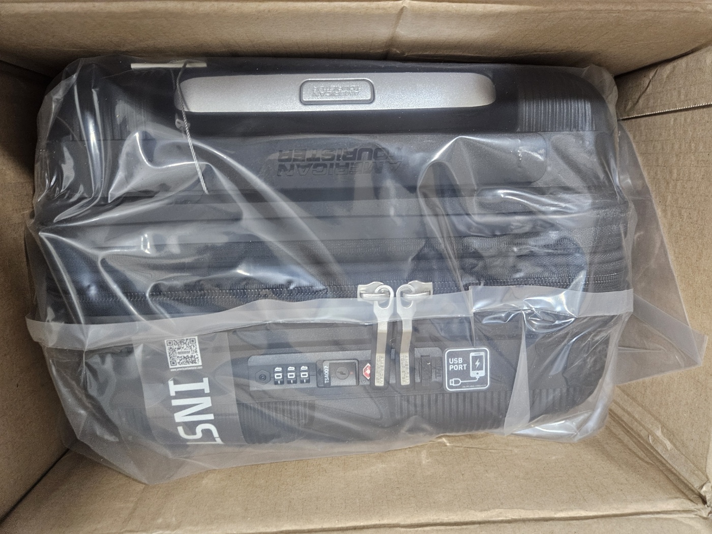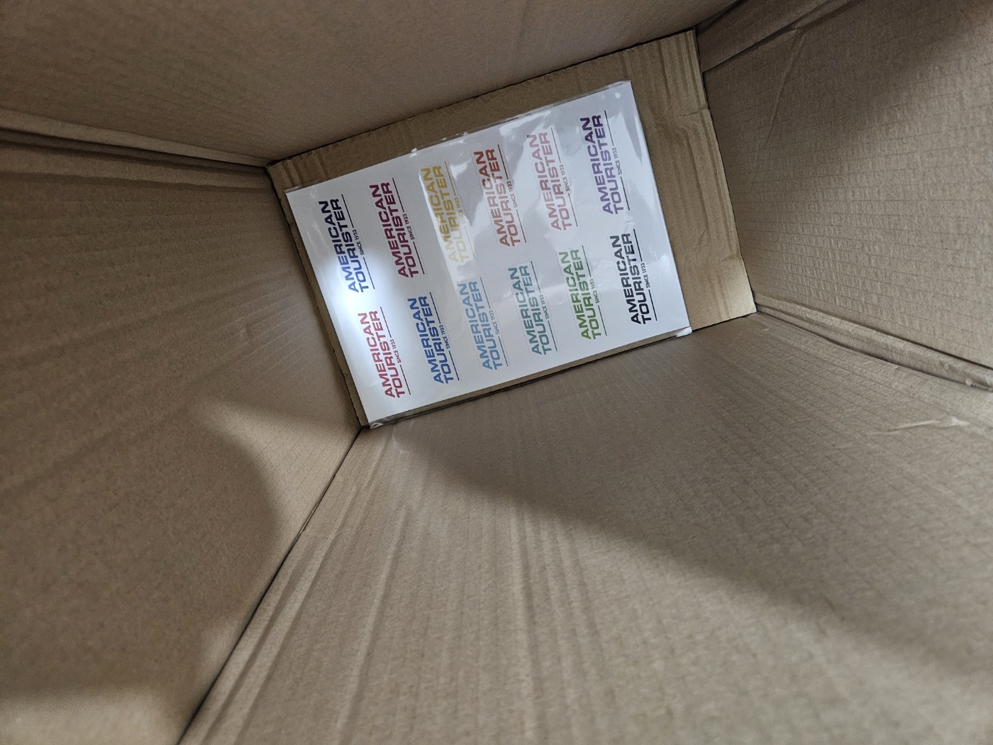 캐리어 안에는 아메리칸투이러스터 로고 스티커가 있었어요.