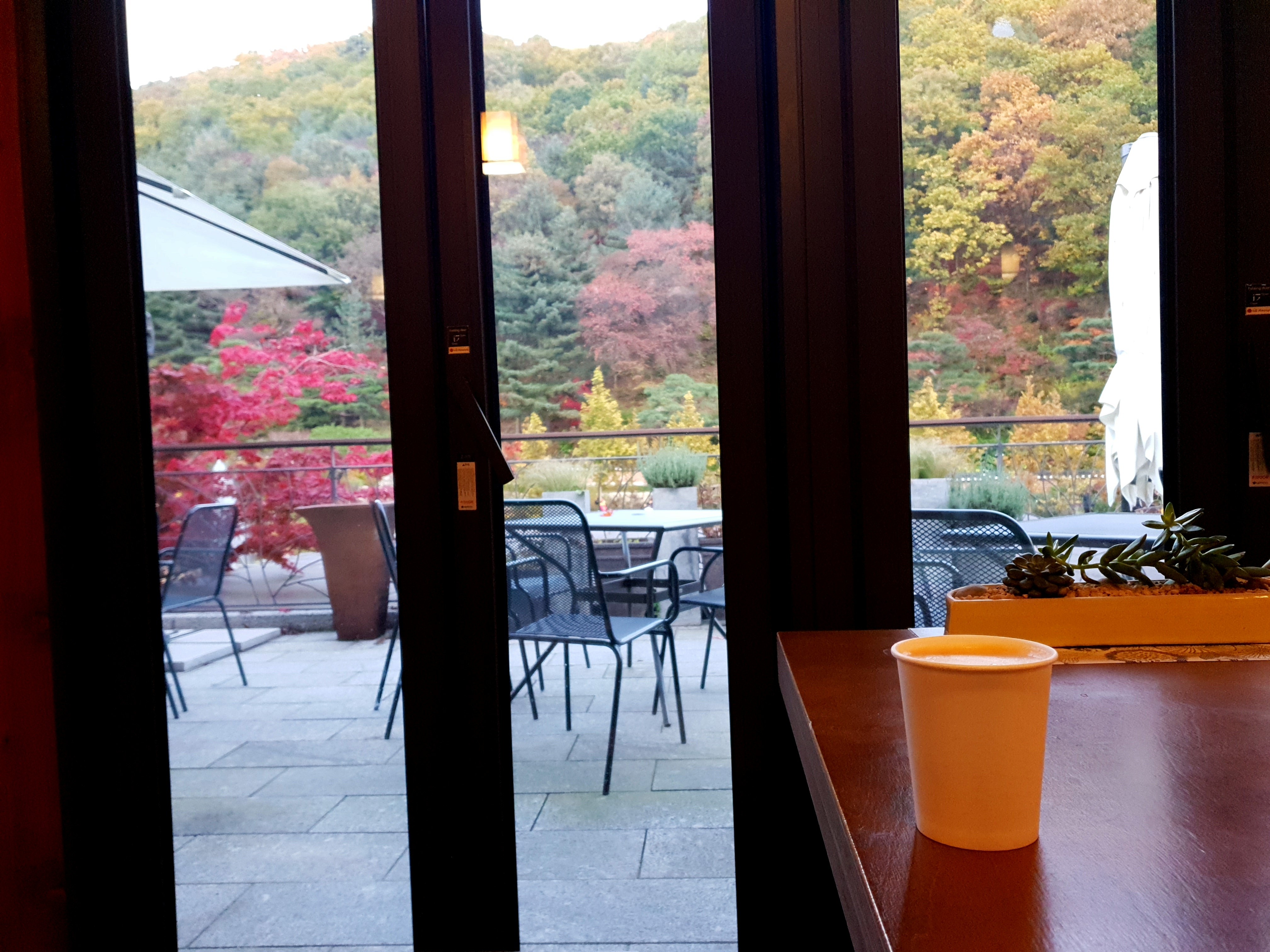 커피가 먹고싶었으니 카페라떼 한잔 해주면서 아쉬운마음으로나마 바깥풍경도 계속 봐줬어요.